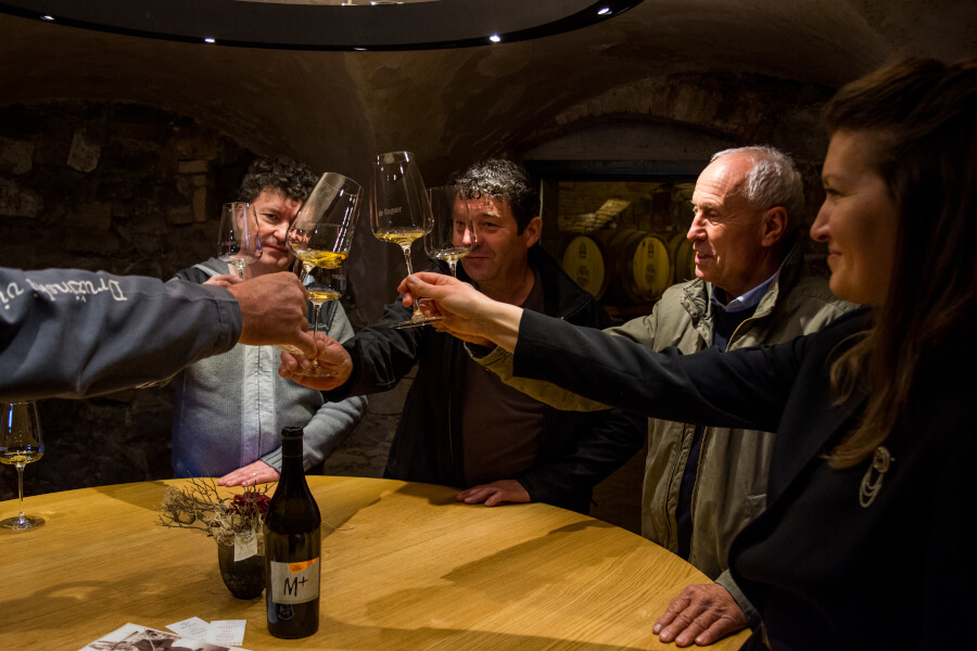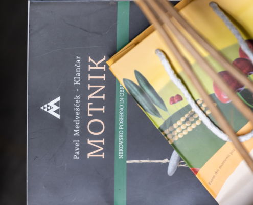 Wine Bliss with the Motnik wine invites you to become a mindful discoverer who uncovers the wisdoms of the old traditions next to the castle, in the vineyard and in the wine cellar. In the courtyard of Dobrovo Castle, you are acquainted with the life of a farmer in the past and with the basic concepts. You connect with the past by touch first when you take the baskets, filled with goodies. You bring them to the vineyard of the Klet Brda Winery, where you get to know 31 different varieties of the wine’s creators, get lost while experiencing nature and find ways to connect with yourself. With music playing in the background, you start a mindful tasting of a typical dish from Brda, other goods from local providers and seasonal fruit. The story about the vine always ends with wine and celebration. That is how the experience slowly comes to an end for you too, as you head to the wine cellar located next to Dobrovo Castle. The ritual Motnik wine is also a part of the Brda’s past. It is not special just because it is made in a unique way, but also because it was once used only for particular rituals, for celebrations and special gatherings. The relaxing music and the literature about Motnik, prepared by Pavel Medvešček, slowly drive you to taste the wine’s fullness. Motnik spins from the bottle to your glass and fills it with its essence. You observe it. You taste it. Can you feel its fullness in your body?