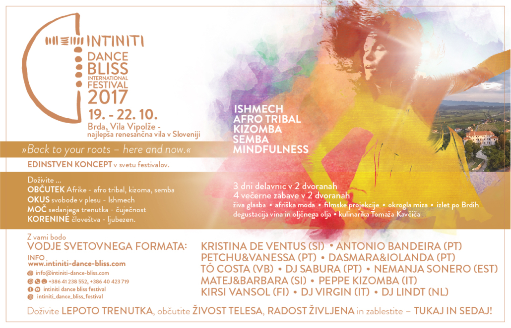 Intiniti Dance Bliss mednarodni festival je v 4-dnevnem dogajanju povezal ljudi, ki so ga obiskali iz 20 različnih svetovnih držav, z Zahodno, Vzhodno in afriško kulturo in udeležencem predstavil tudi briško kulturno dediščino.