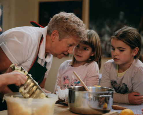 Prek ustvarjalnih, kuharskih in plesnih delavnic smo prebudili različne čute. Na zabaven in sproščen način smo se učili o pomembnih življenjskih temah. Otroci so se v medgeneracijskem druženju sprva spoznavali modrosti življenja, navade in običaje naših prednikov med osvajanjem kuharskih spretnosti z Briškimi ženami in dekleti. Skupaj smo kuhali stare briške jedi in z ustnim izročilom spoznali stare briške recepte.